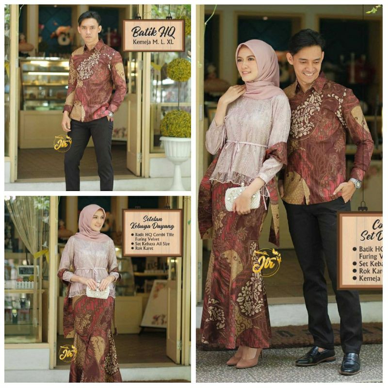 Batik couple kebaya atasan wanita muslim brokat tile modern baju pesta lamaran kondangan tunangan pasangan keluarga wisuda setelan rok terbaru.